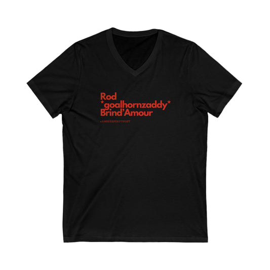 Rod *goalhornzaddy* Brind'Amour Unisex Bella +Canvas Short Sleeve V-Neck Tee