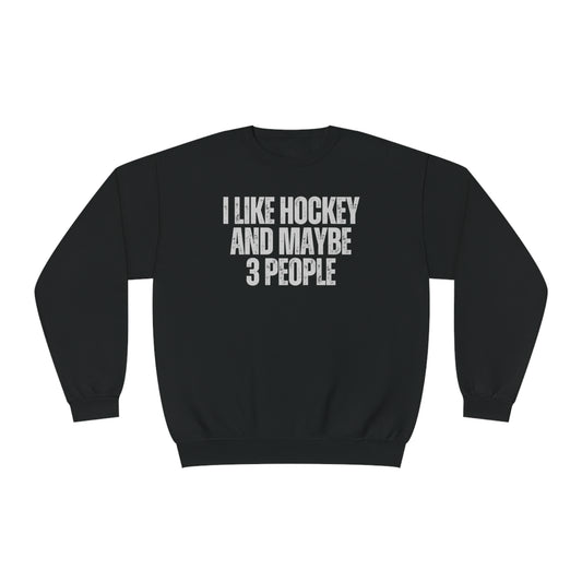 I Like Hockey and Maybe 3 People Unisex Jerzees Crewneck Sweatshirt