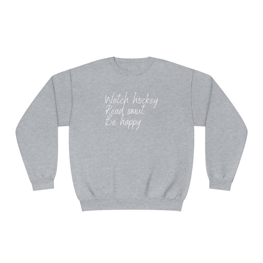 Watch Hockey. Read Smut. Be Happy Unisex Jerzees Crewneck Sweatshirt