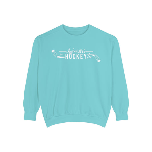 Ladies Love Hockey Too Unisex Comfort Colors Crewneck Sweatshirt