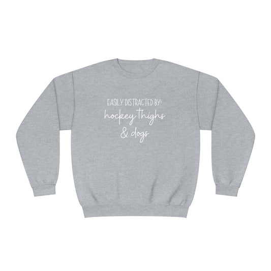 Easily Distracted by Hockey Thighs and Dogs Unisex Jerzees Crewneck Sweatshirt