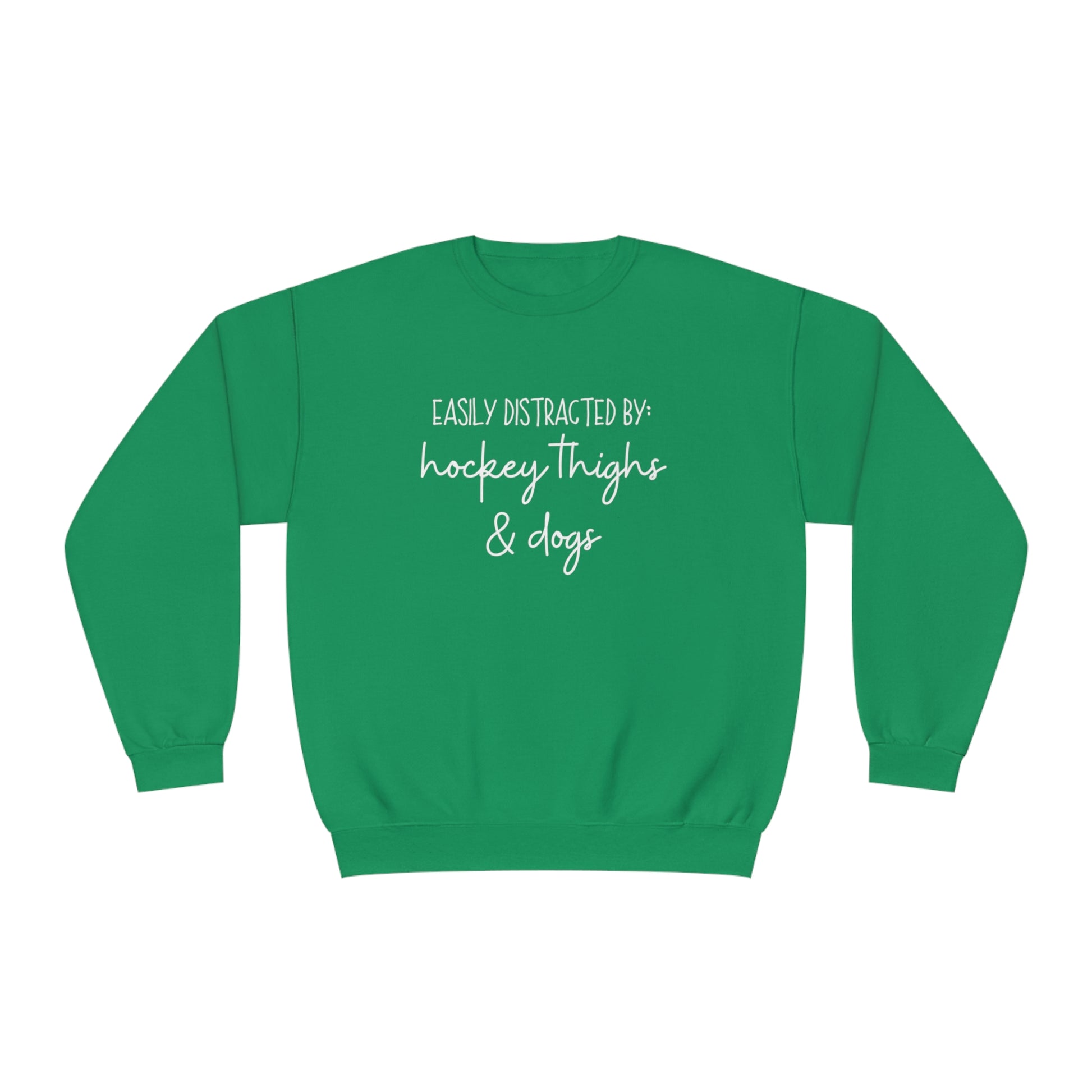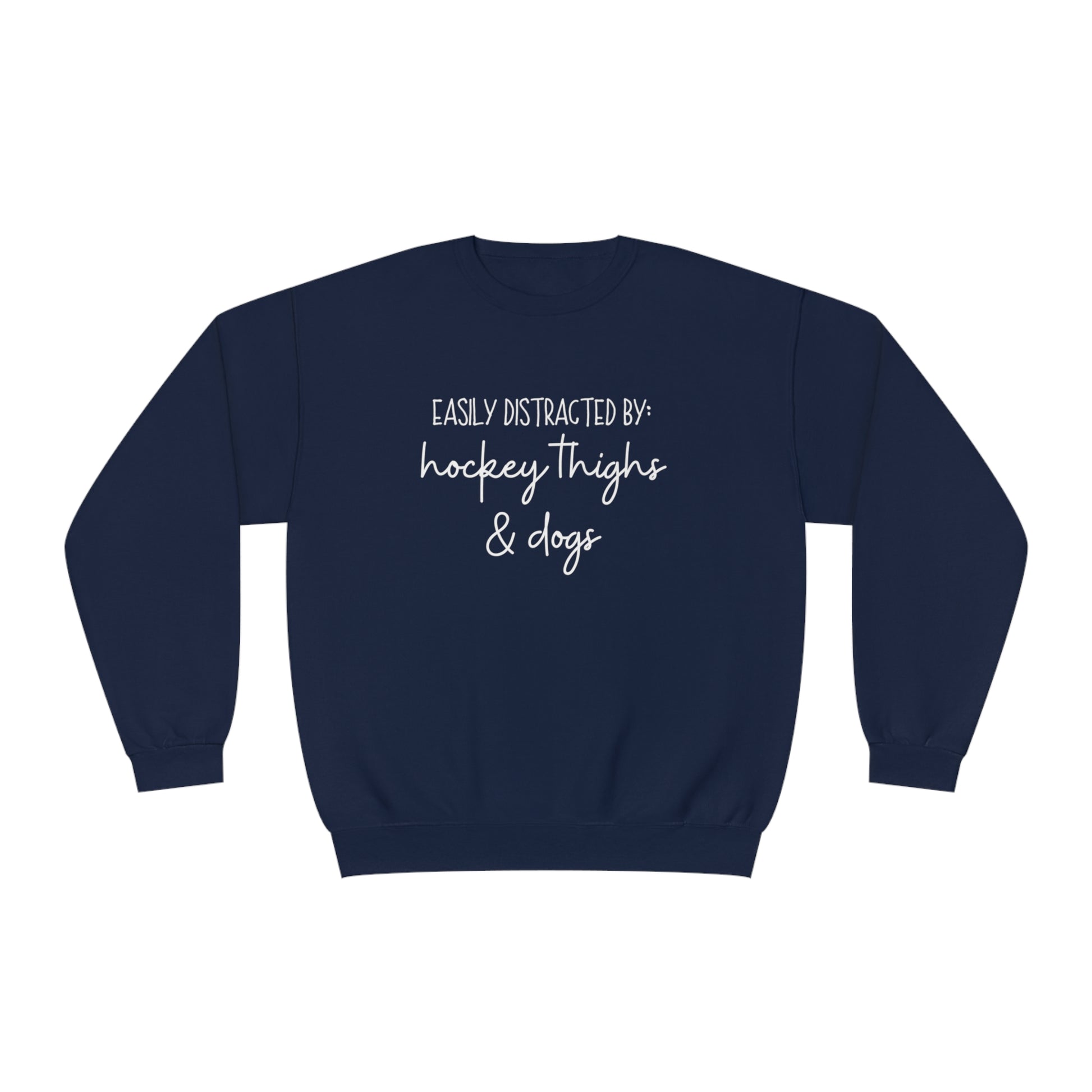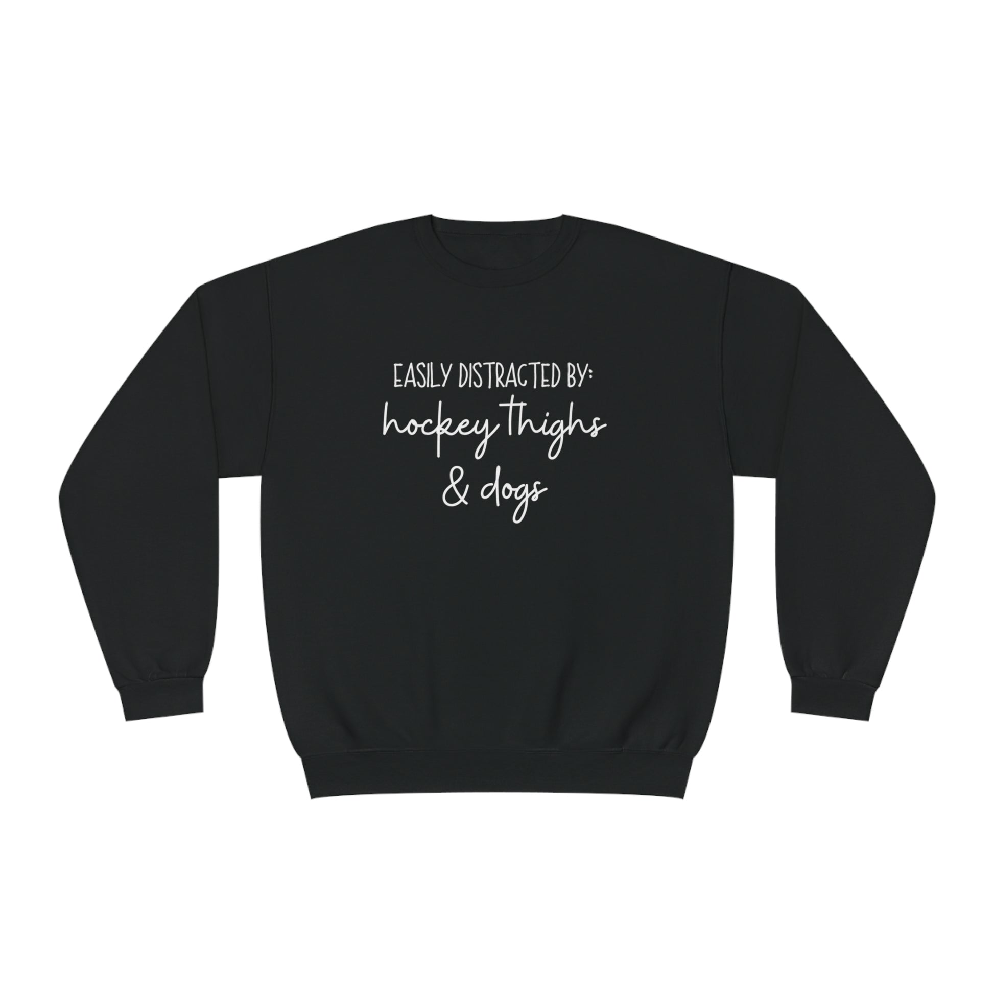 Easily Distracted by Hockey Thighs and Dogs Unisex Jerzees Crewneck Sweatshirt