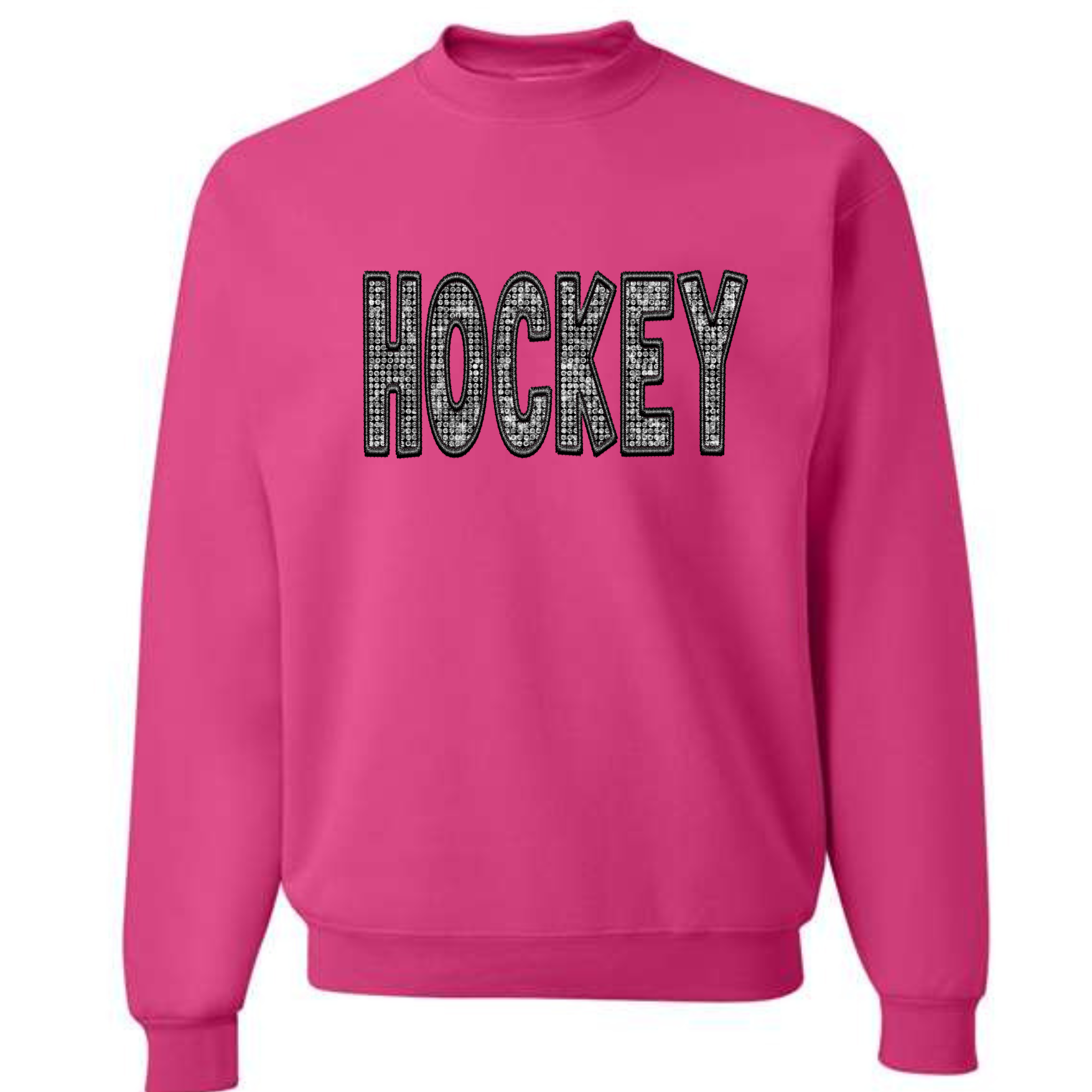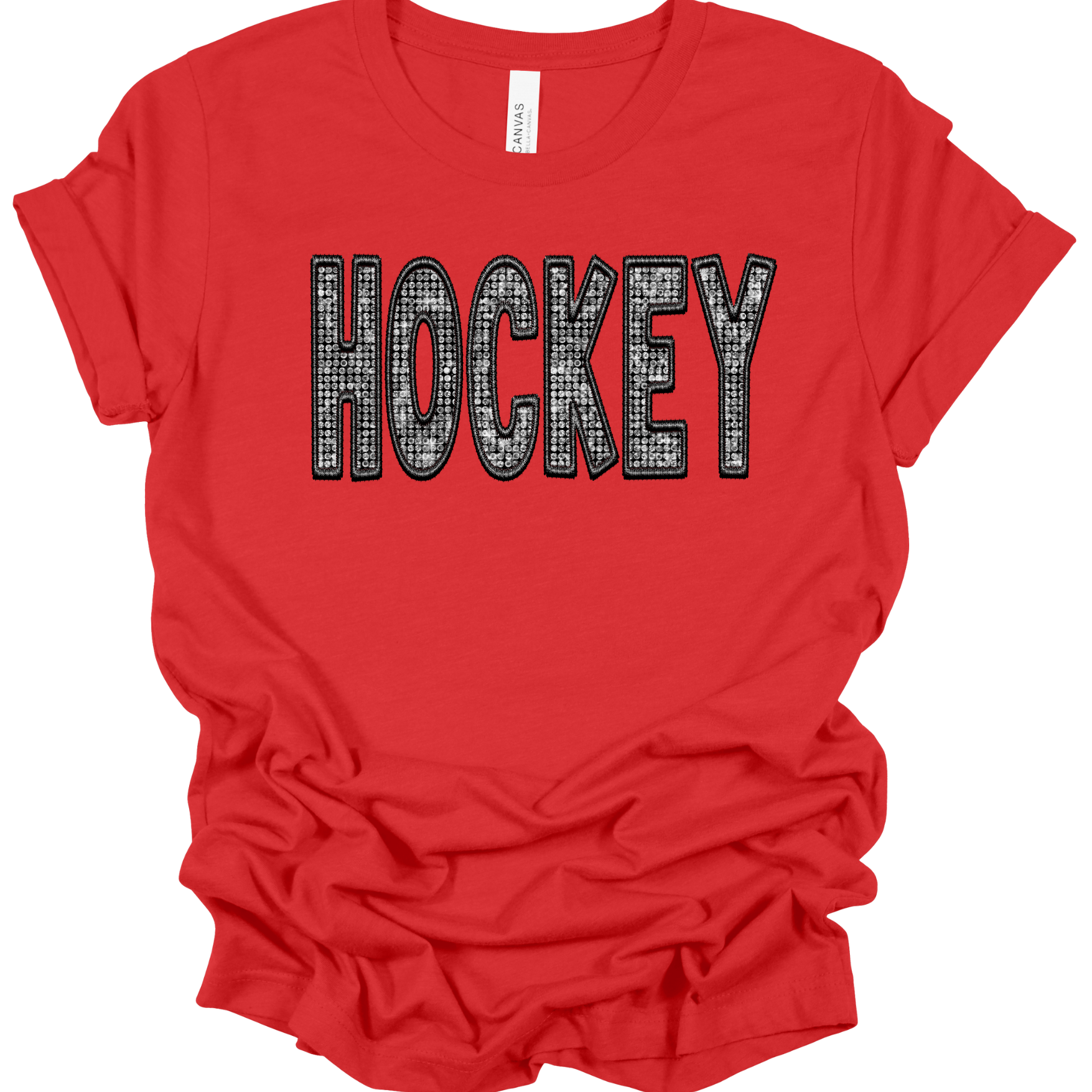 Want to show your love for hockey in a fun and stylish way? This faux rhinestone hockey shirt is the one for you!