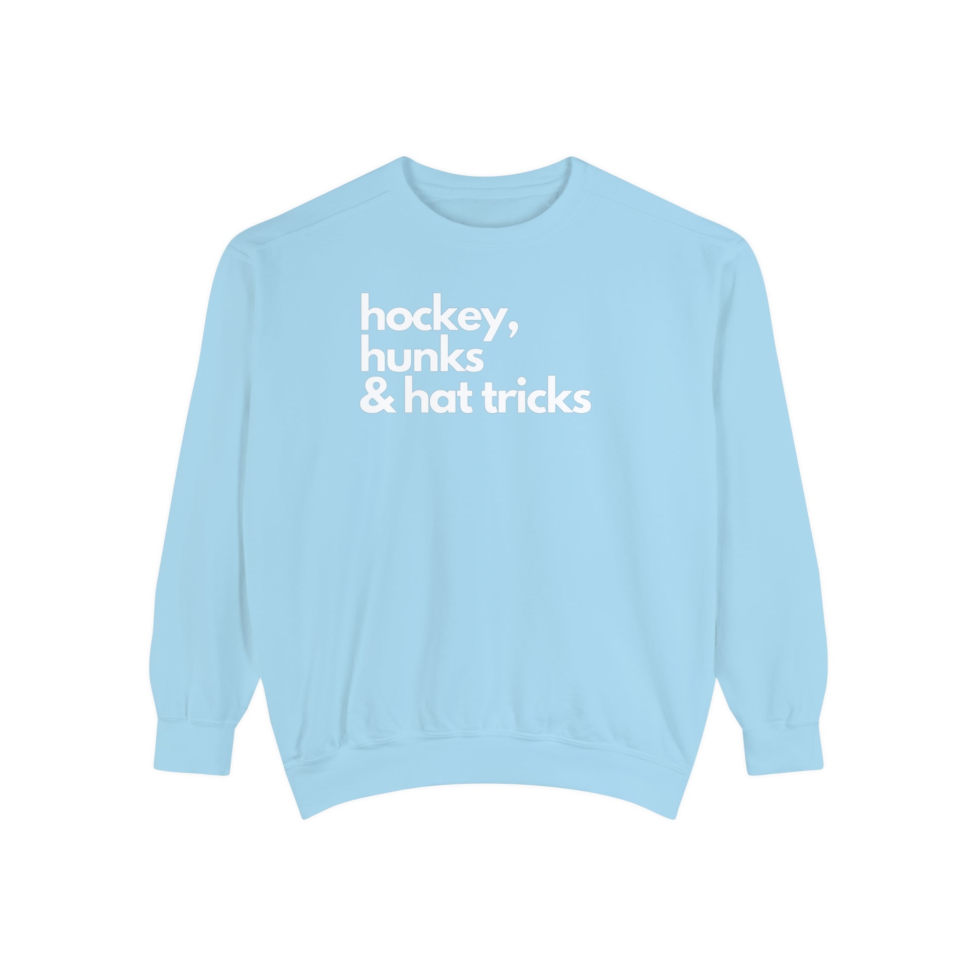Hockey, Hunks & Hat Tricks Unisex Comfort Colors Crewneck Sweatshirt